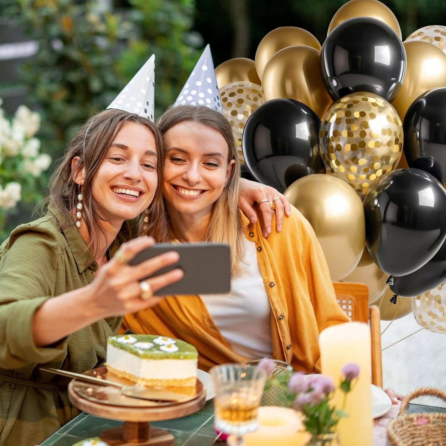 Set 16 Baloane din Latex, 30 cm, Auriu, Negru, Confetti, 2.8 g