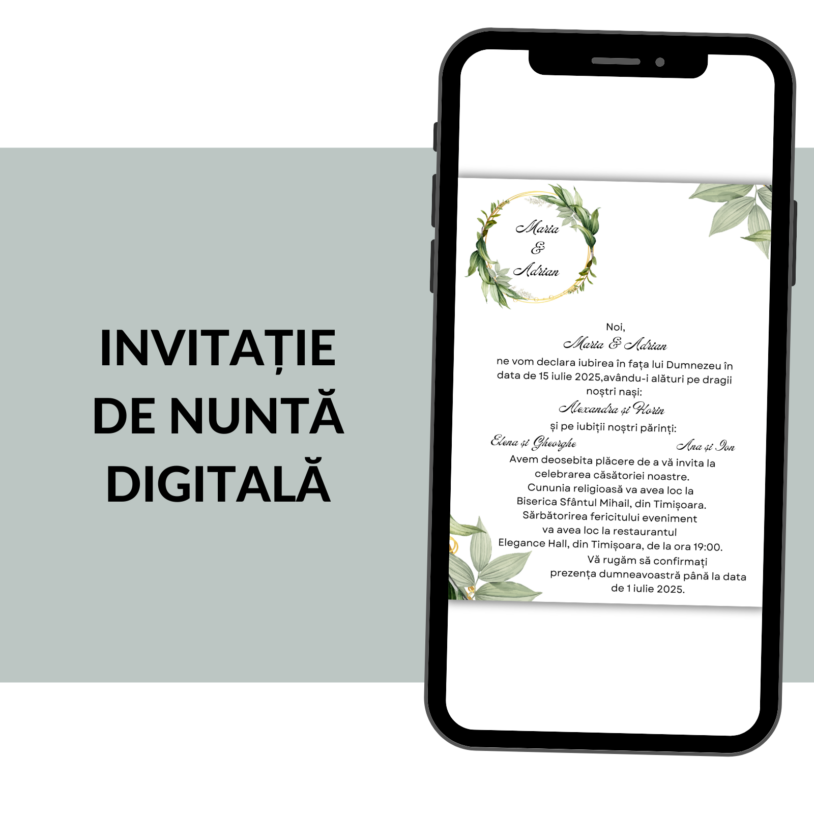 Transformă evenimentul tău într-o experiență memorabilă cu invitațiile noastre de nuntă digitale personalizate!