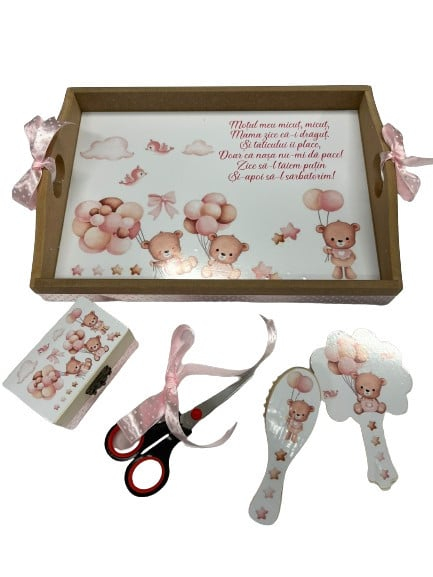 Tavita de turta, 5 piese, Ursuletul cu baloane, roz